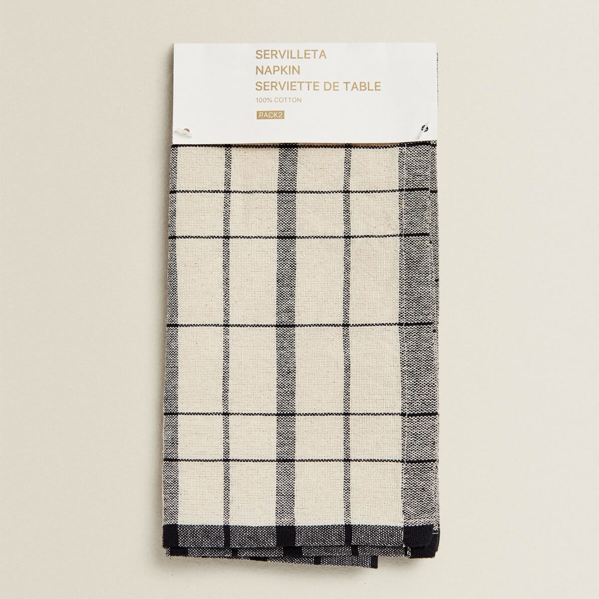 Cotton napkin with a checked design on a white background. Sold in packs of two.