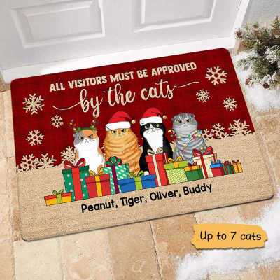 Christmas Warning Cats Personalized Doormat