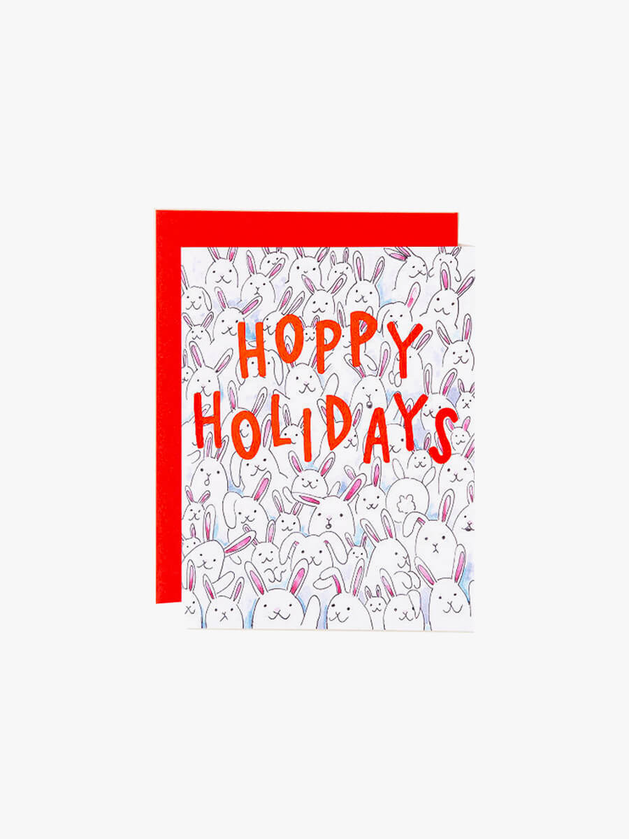 Send a some sweet holiday wishes to the lover in your life. This boxed set features a Christmas decorated in festive lights. Front of cards read, "Hoppy Holidays".