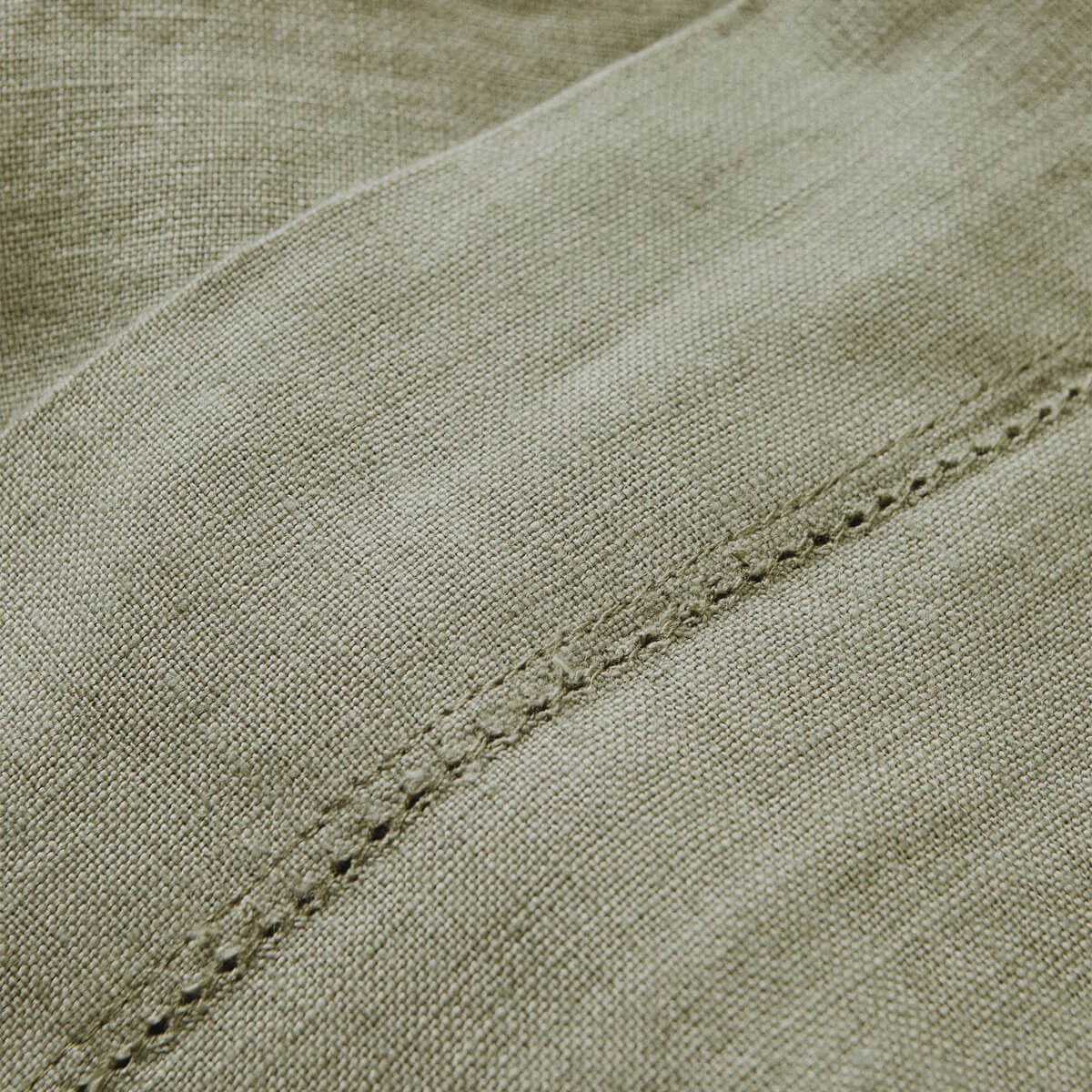 Plain linen tablecloth with hemstitched detail.